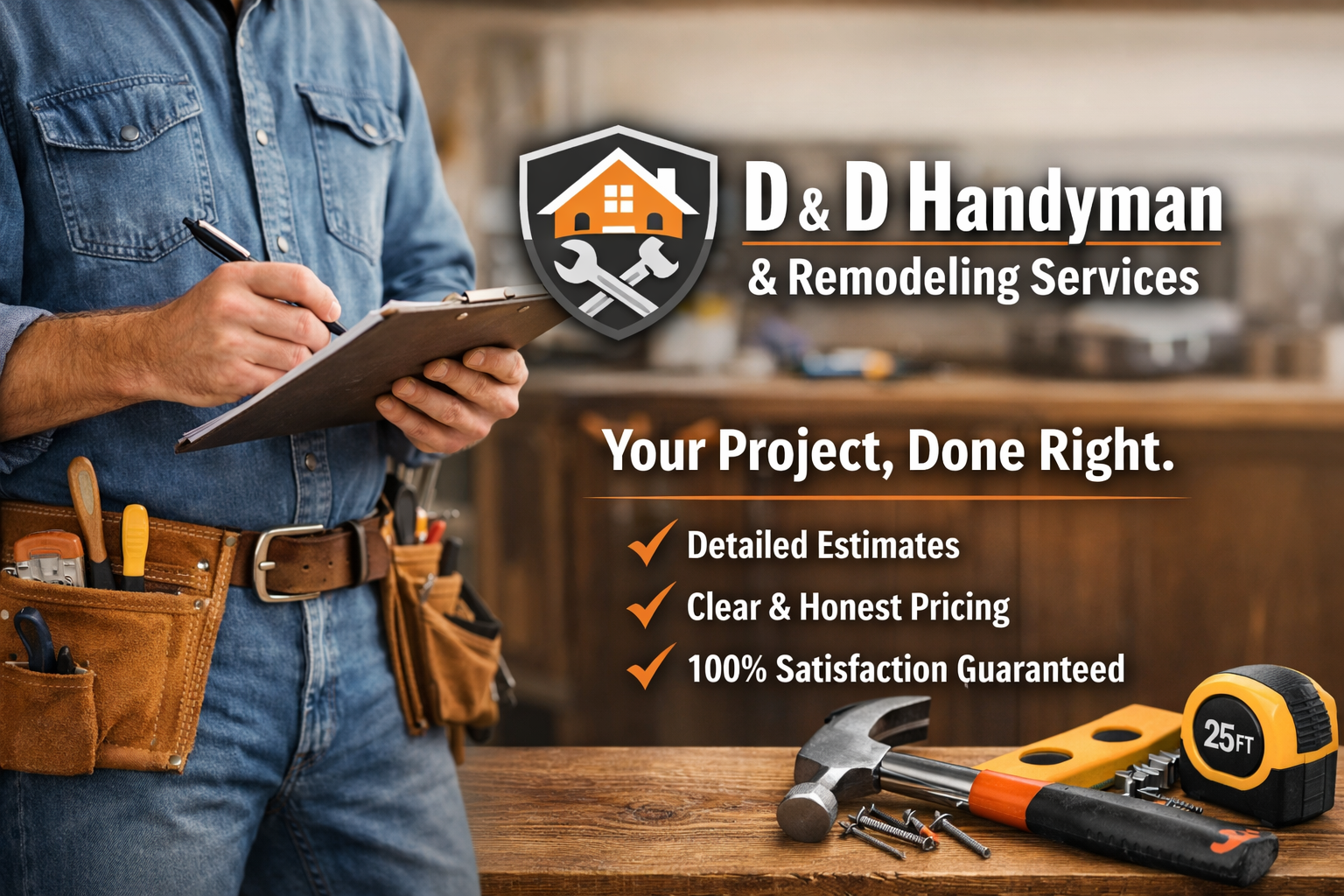 D & D Handyman & Remodeling Services is a veteran-owned, father-and-son team serving the DFW area. We deliver premium workmanship and commercial-style jobsite standards—clear communication, clean sites, and dependable scheduling—at fair, best-value pricing.